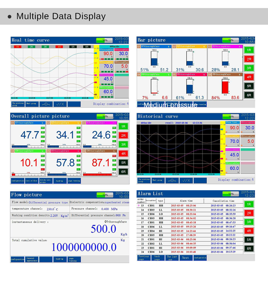 A small thickness, high integration, colorful, comfortable operation, complete function, high reliability and cost-effective products has great practical significance.Our company research and development of ultra-thin widescreen paperless recorder, designed to meet the user's rational demands, improve the user experience, mainly used in petroleum and petrochemical, chemical, paper making, plastic, textile printing and dyeing, metallurgy, building materials, science and education of national defense, biomedical, municipal environmental protection, energy metering, food grain and oil, alcohol, tobacco, beverage, equipment manufacturing, complete equipment and agriculture, forestry and animal husbandry, fishery and so on a variety of industries.